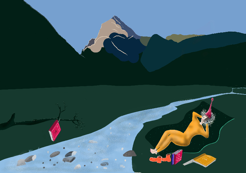 Ali, il personaggio disegnato per il festival “con le ali”, si porta tratti selvatici, viene dal bosco, dalla terra, ma prende anche il volo per portarci nei luoghi concreti del festival, rappresentati come radici, foresta e cielo.